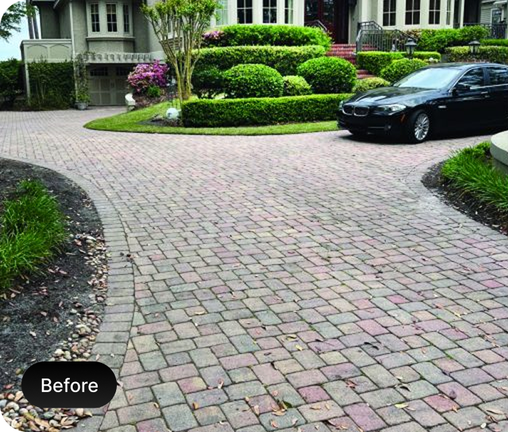 The surface is compacted using a vibrating plate and kiln-dried sand is brushed into the joints to lock the blocks securely in place.